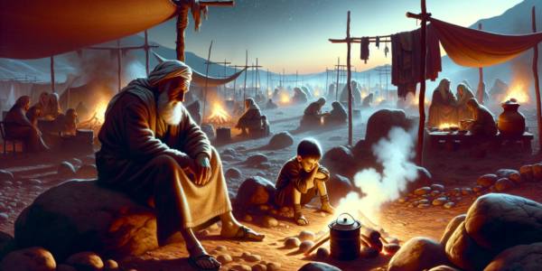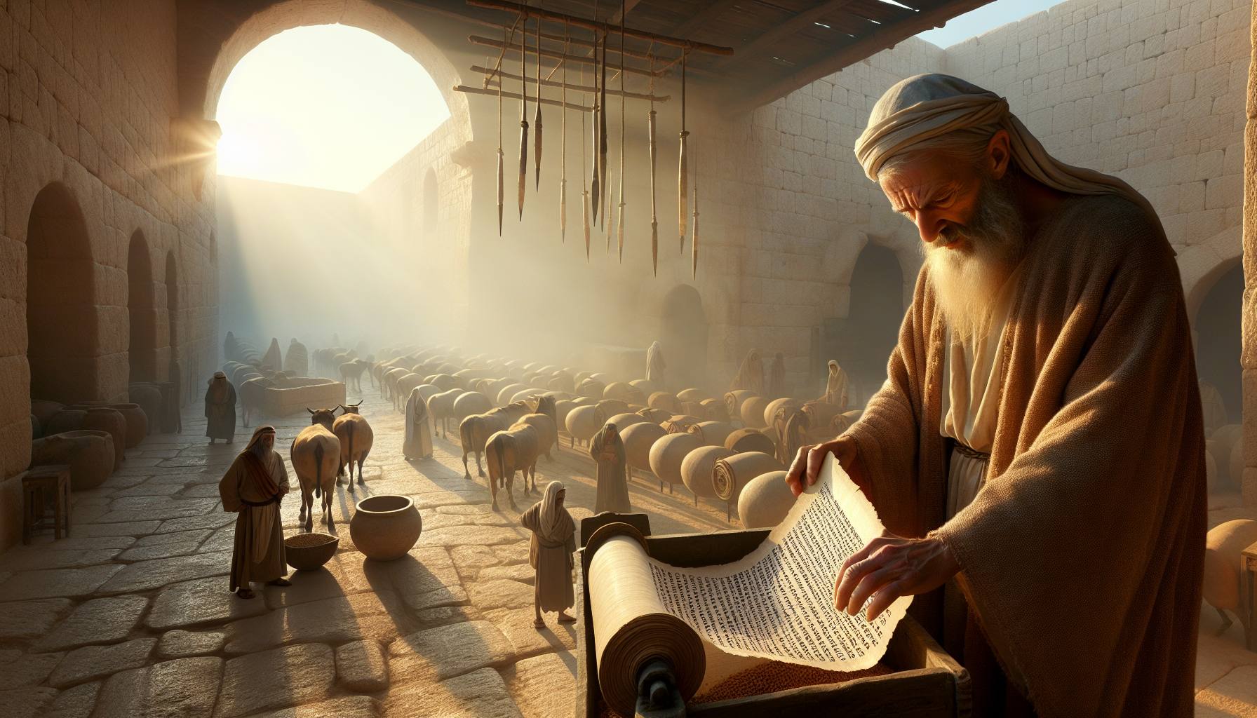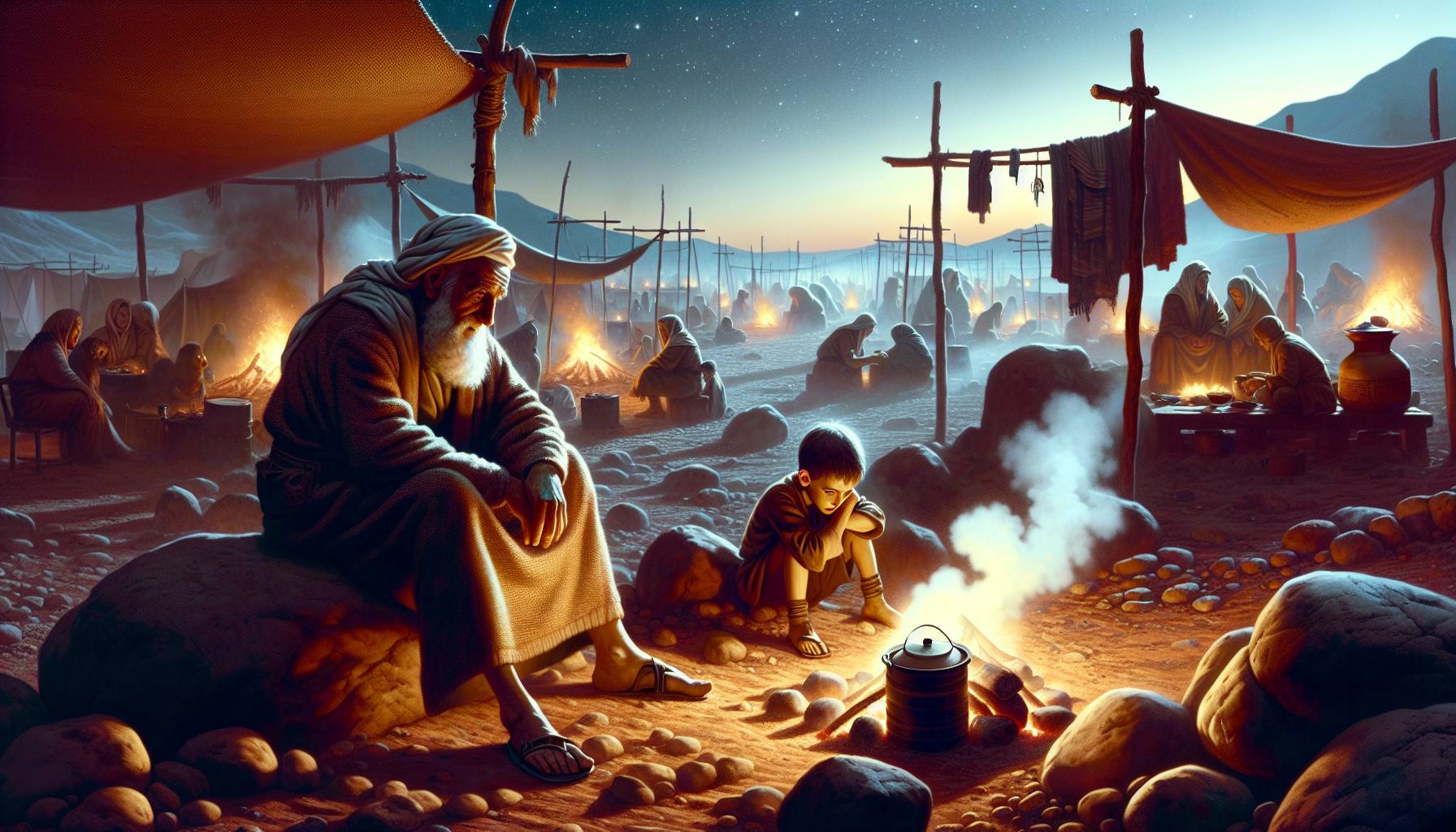 灯芯草编织的幕帘在微风中轻轻摩挲,发出叹息般的细响。亚伦站在会幕门口,手掌抚过已…