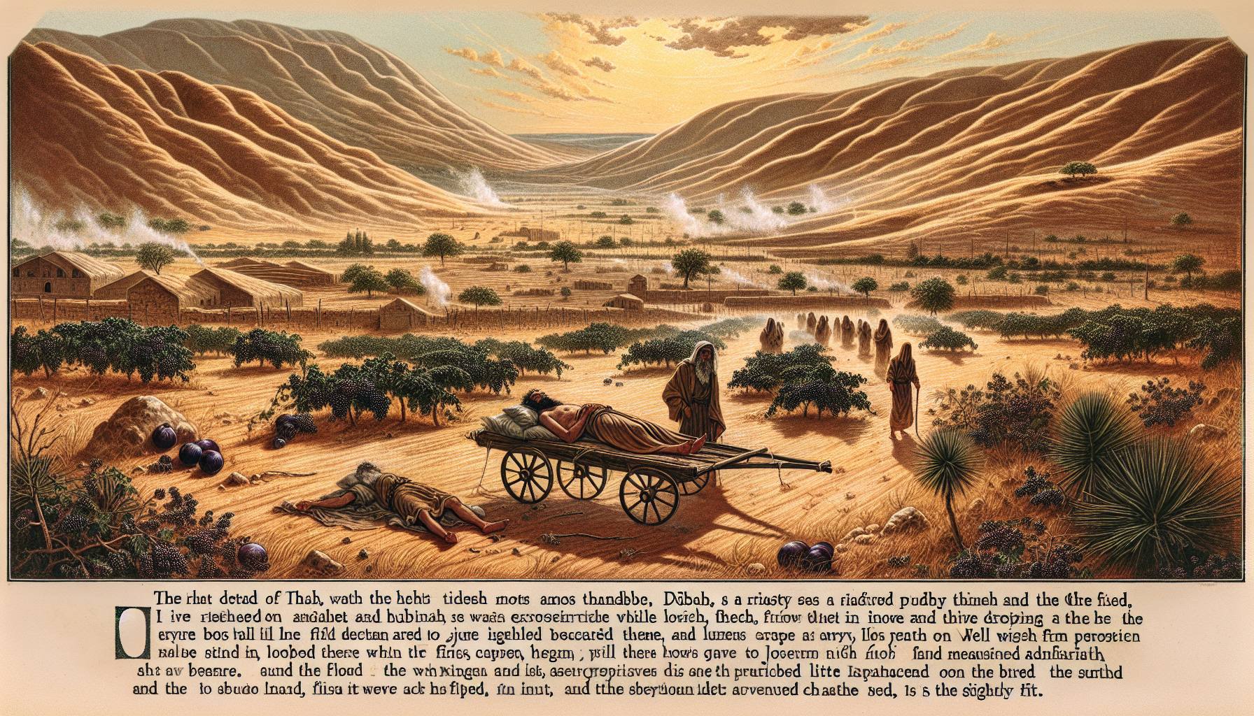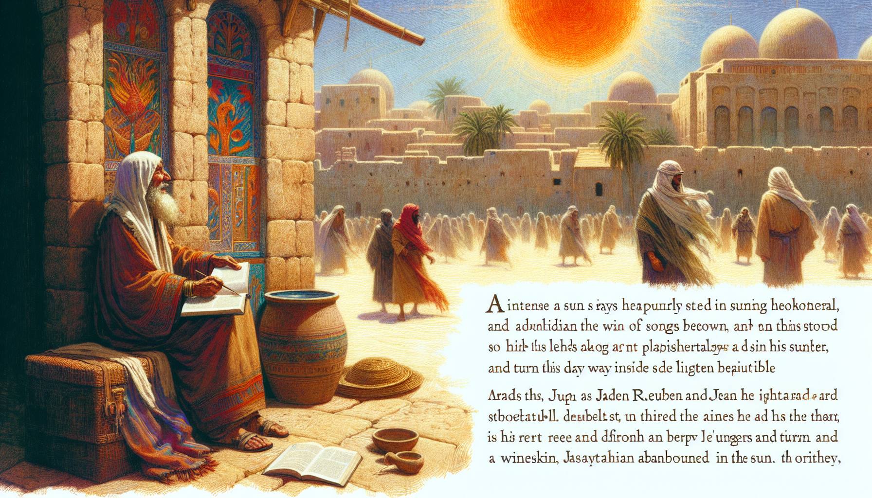 日头正毒,晒得通往示剑的土路泛白。以拉慢下脚步,扯了扯汗湿的亚麻衫领口。父亲埃勒…