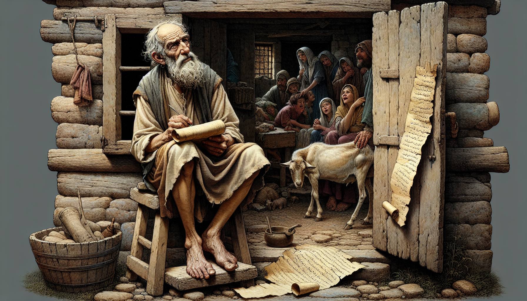 风卷着耶路撒冷街道上的尘土,打在亚伦的衣袍下摆上,留下一层灰白的印记。他是个抄经…