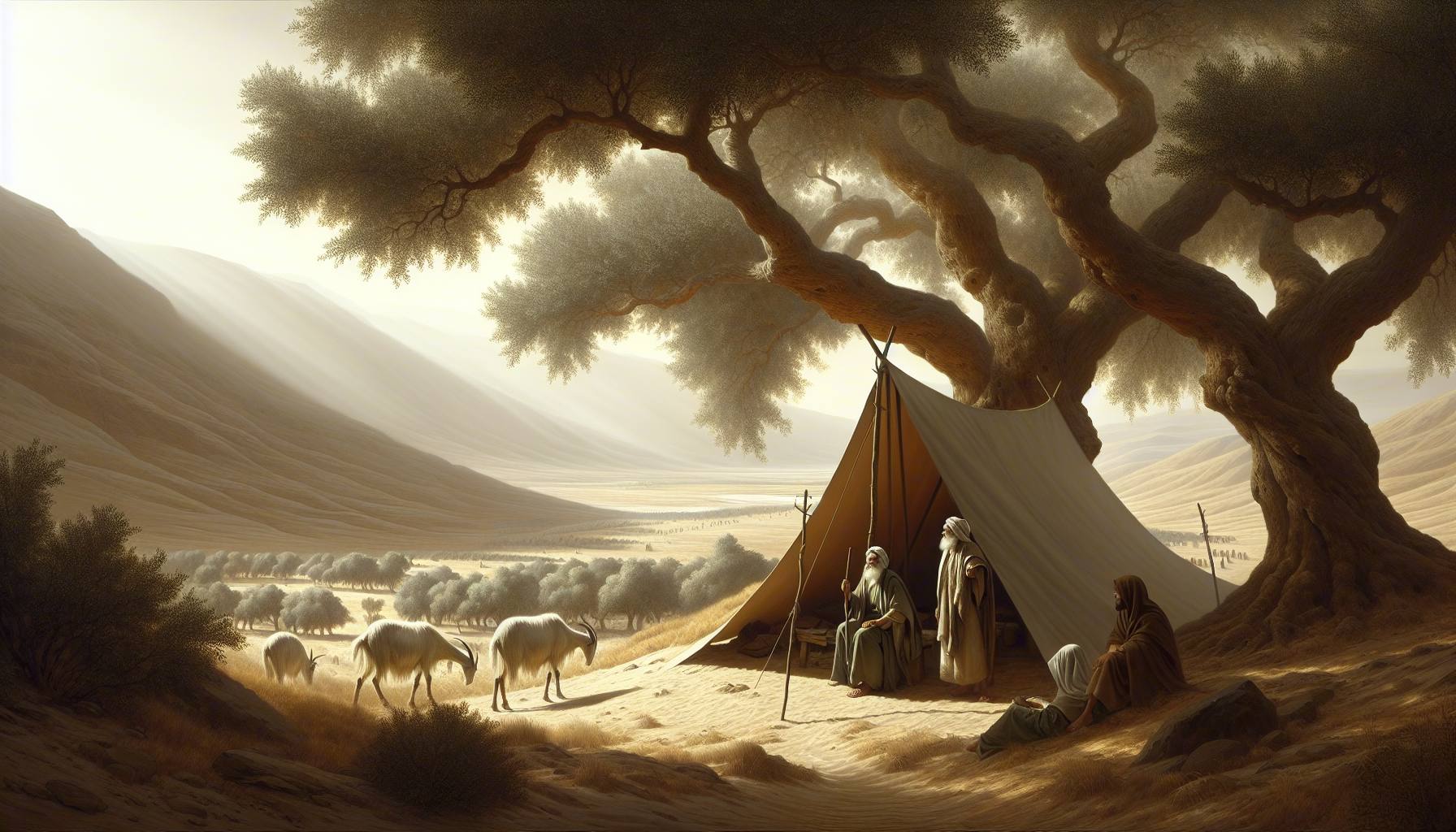 正午的烈日把幔利平原的橡树林烤得发蔫,连蝉鸣都显得有气无力。亚伯拉罕坐在帐棚门口…