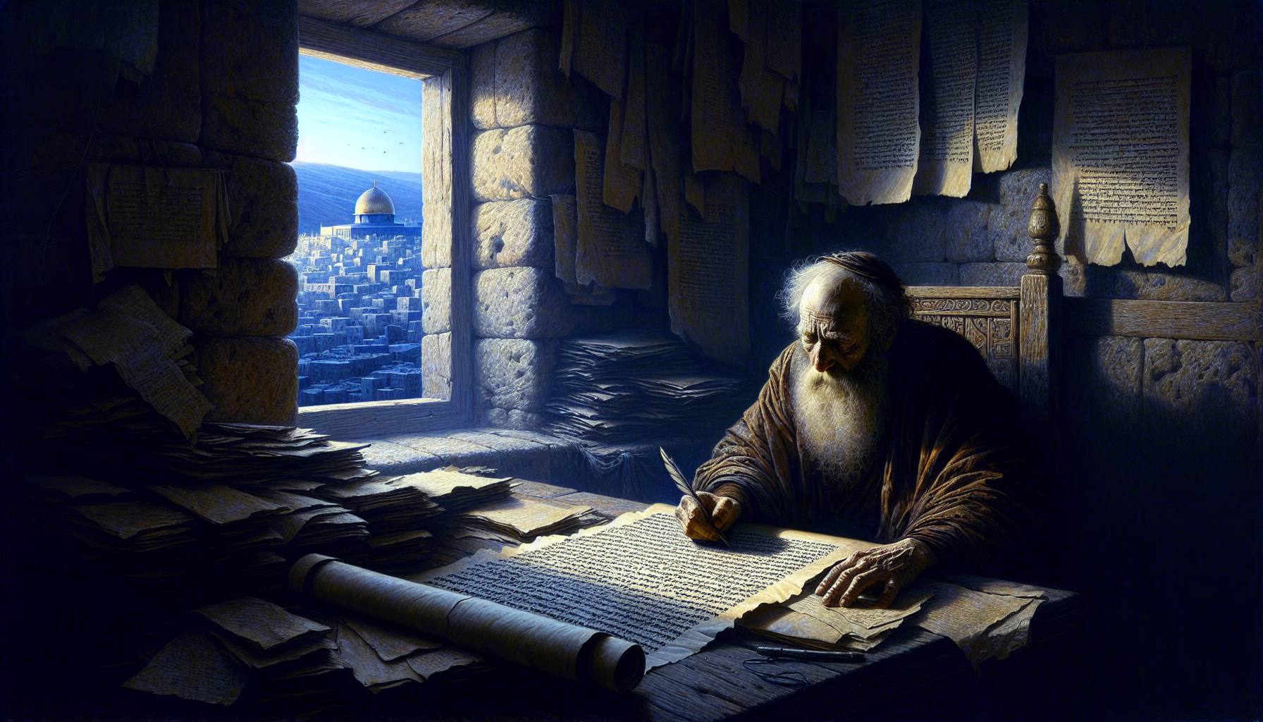 晨光像碎金,透过耶路撒冷老城区狭窄的窗格,洒在埃利埃泽尔的工作台上。木屑在光柱里…