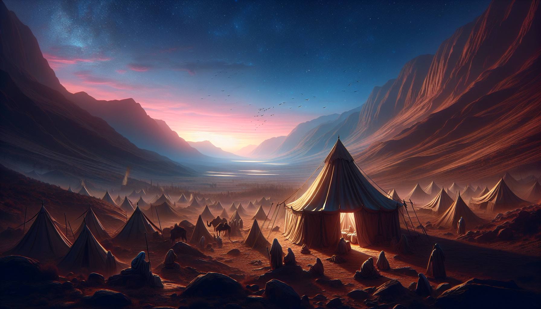 日头西斜,将最后的余晖涂抹在吉甲营地的幔子上,空气里弥漫着炊烟和尘土的气味。帐幕…