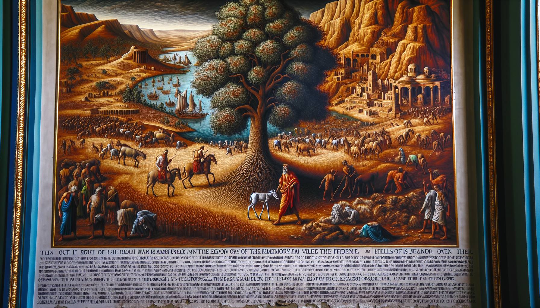 油燈的光在石壁上跳動,映出以拉他臉上深深的溝壑。他手中摩挲着一塊光滑的橄欖木,目…