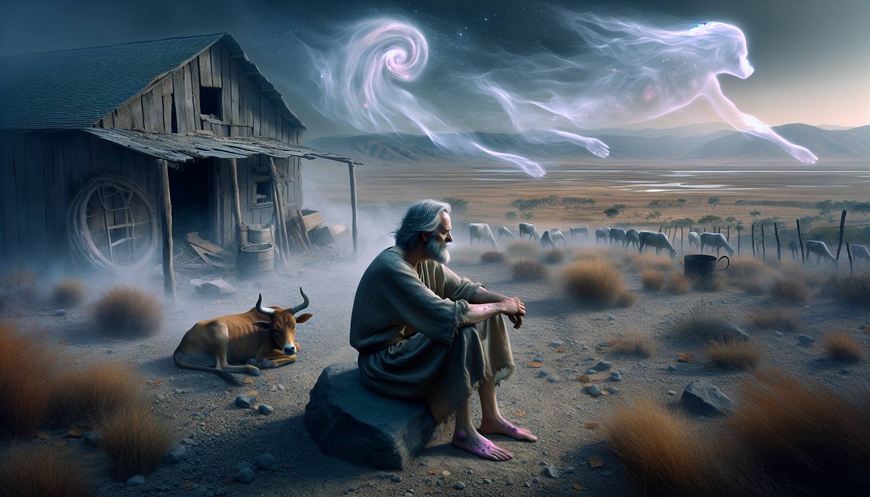 雨停的时候,云层裂开一道缝隙,天光漏下来,照在那片焦土上。约伯坐在家门口的灰堆里…