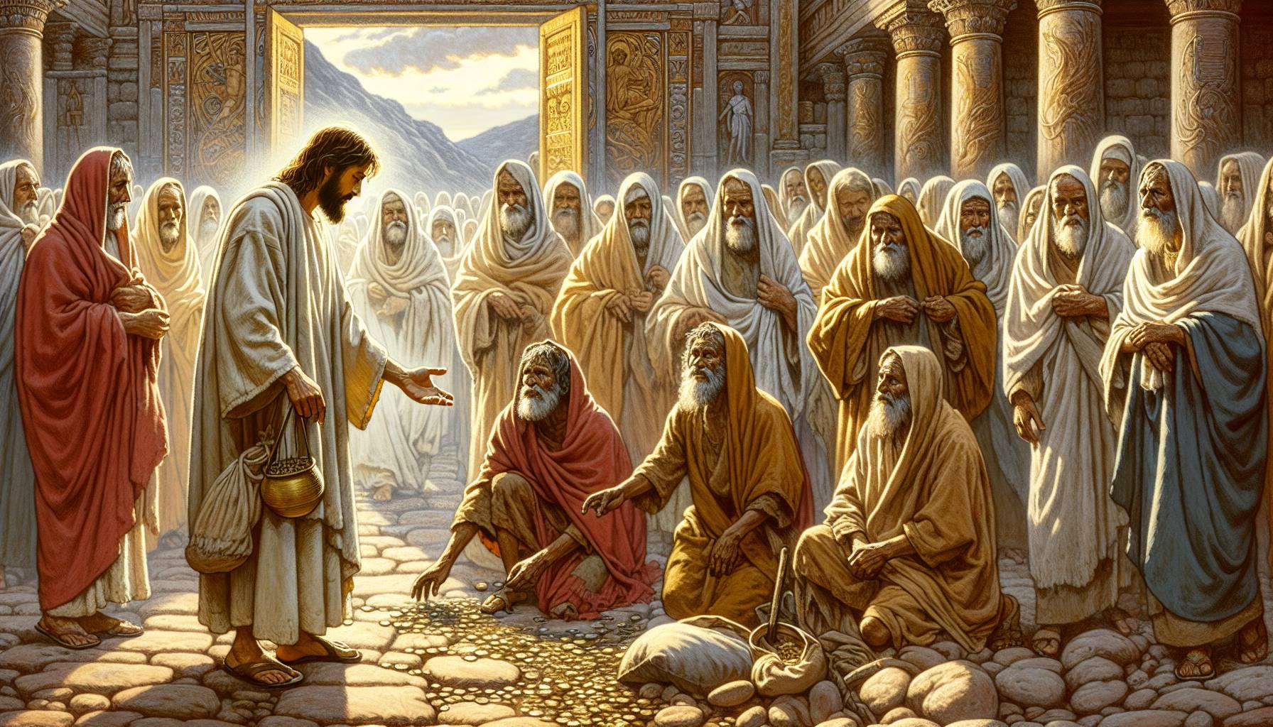 晨光还很淡,像一层稀薄的油,涂在耶路撒冷圣殿的廊柱上。彼得和约翰的脚步落在石板路…
