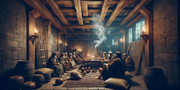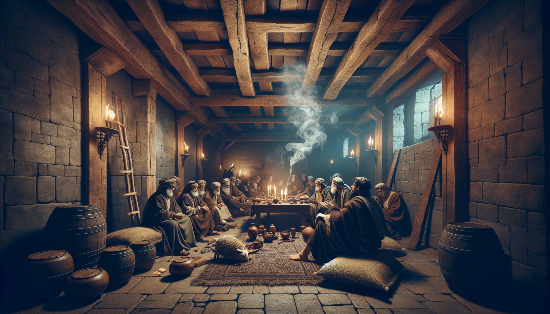 油燈的光在低矮的房梁上搖曳,將人影拉長,又揉碎在土牆上。空氣裡還滯留着逾越節羔羊…