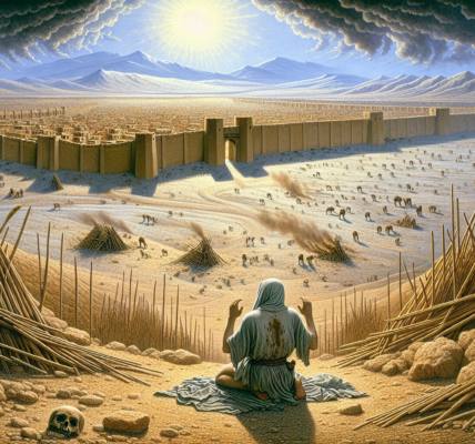 因此,咒诅吞噬大地,干旱与饥荒成为常事。昔日繁华的城邑变为废墟,强壮的勇士如同枯草,美貌的女子面色苍白。孩童因无粮哀哭,母亲怀抱空空的瓦罐,绝望地望着天空。