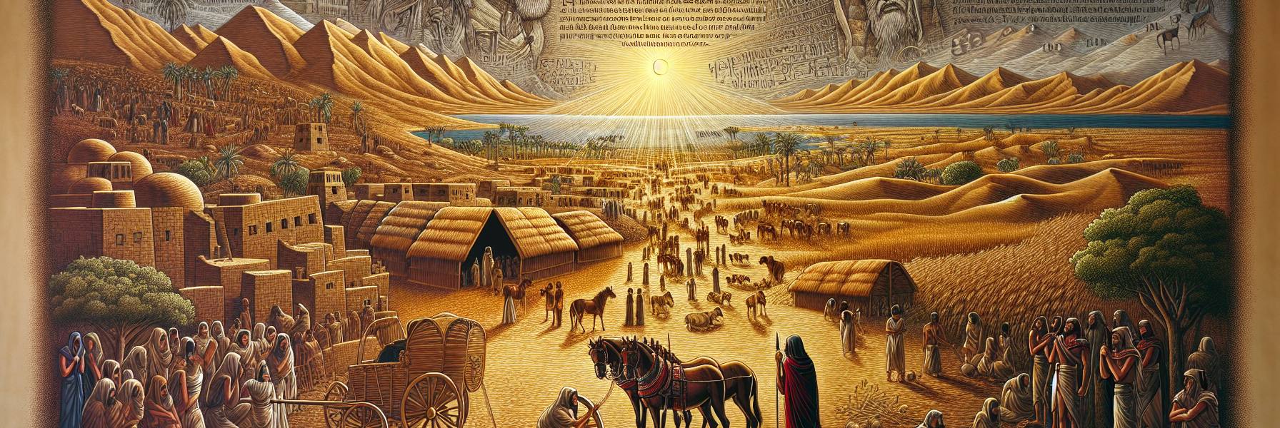 雅各站在歌珊的平原上,望着这片陌生的土地,心中百感交集。他曾是迦南的寄居者,如今却在埃及找到庇护。他仰望天空,默默祷告,感谢神的带领。他知道,这一切都在神的应许之中。