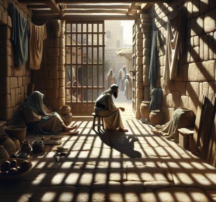 老人望向远处缓缓升起的日头,想起昨日摩西从山上带下来的话。他起身从陶罐里舀水净手,示意撒母耳坐在身旁的羊毛毯上。