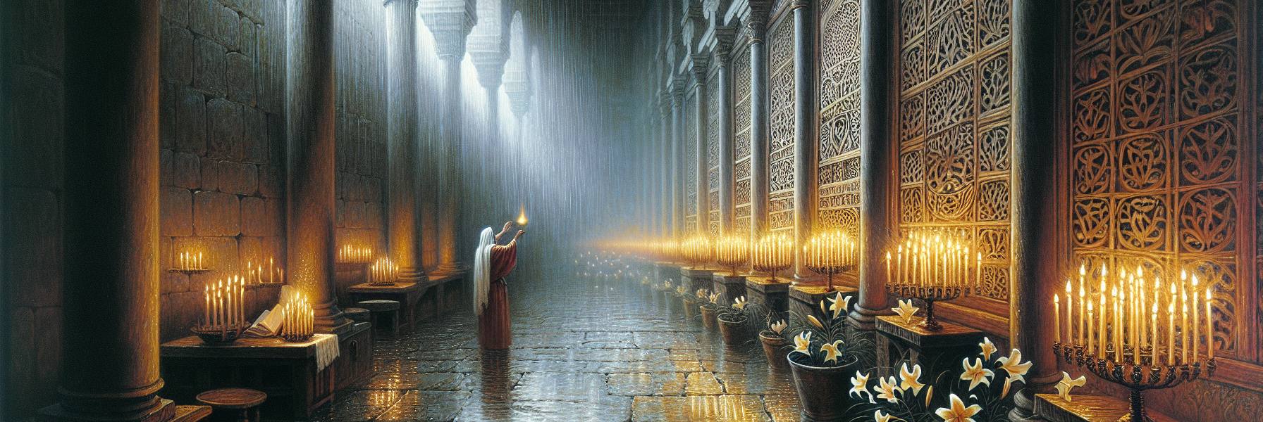 他摸摸自己素白的衣袍,虽然他不是亚伦的后裔,但每个利未人都记得在圣殿侍奉的荣光。他仿佛又看见清晨的献祭,祭司的手在祭物上方展开如莲花。