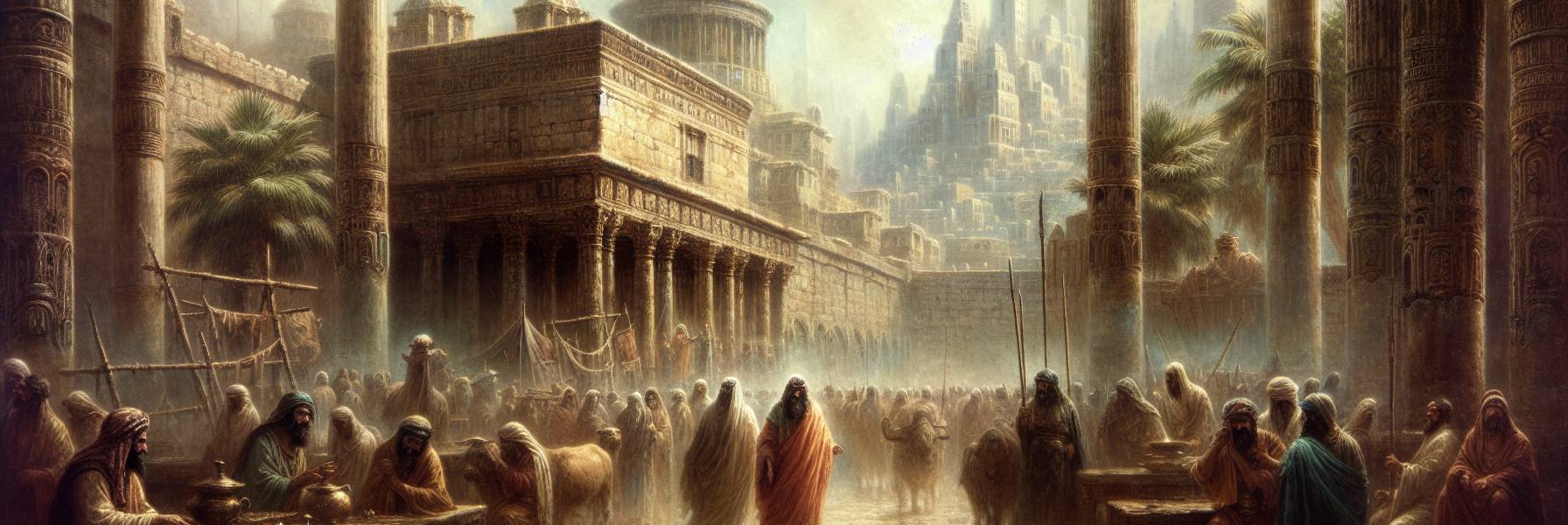 秋雨初降的清晨,耶利米又来到圣殿。这次他带着铁轭,冰冷的金属在雨中泛着青光。哈拿尼雅不在场,只有几个老祭司令在核对献祭的羊羔数目。