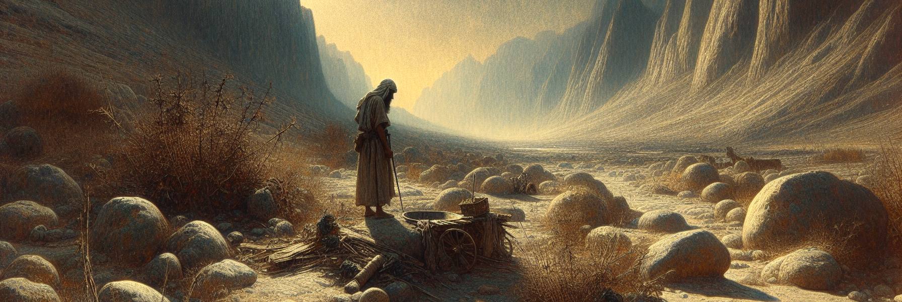 那风刮过嶙峋的岩石,卷起沙砾,打在耶稣干裂的唇上。他已经四十昼夜没有进食了。胃囊像一块晒硬的皮子贴着脊骨,喉咙里满是沙土的味道。但他不觉得饿——或者说,那饥饿感早已超越了肉体的范畴,变成了一种更深的、与这片土地融为一体的空茫。