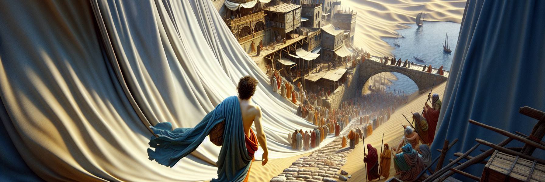 海风带着咸湿的气息扑在脸上,彼得站在约帕的屋顶上祷告时,还能听见远处浪花拍打礁石的闷响。夕阳正沉入地中海,把云彩染成葡萄汁般的紫红色。他感到腹中饥饿,恍惚间看见一块大布从天上坠下,四角系着天空与海洋的缝隙。布里有走兽、昆虫和飞鸟,都是律法里定为不洁的。有声音说:”彼得,起来,宰了吃。”