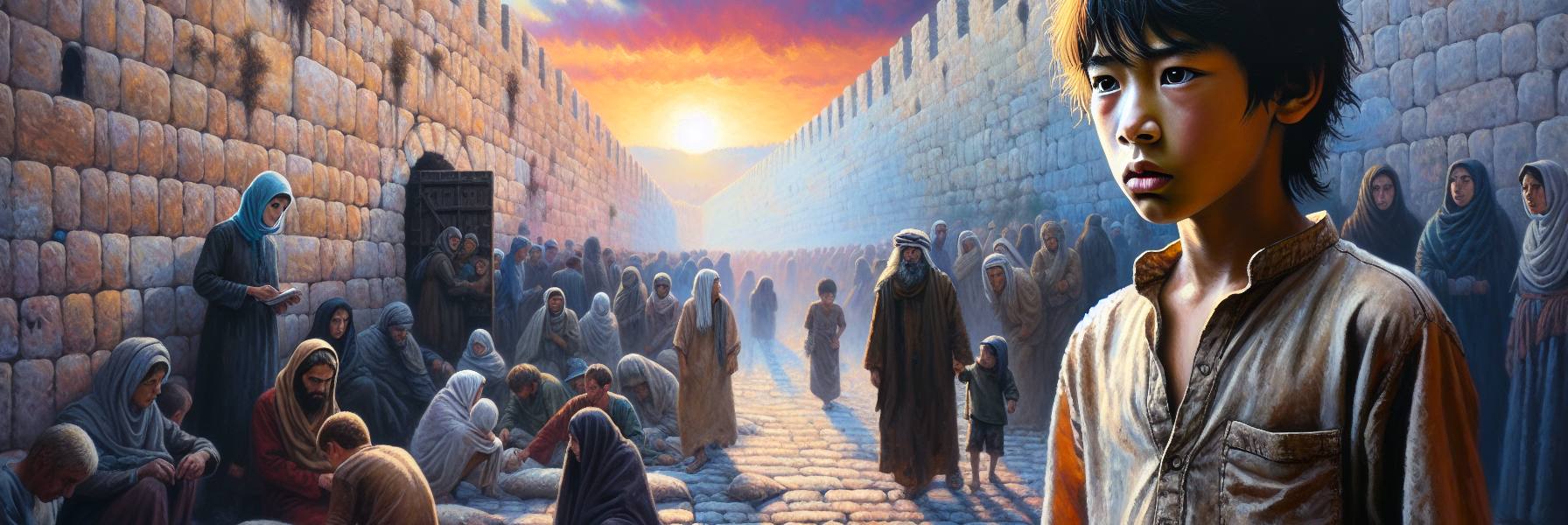 许多年前,当先知以赛亚的话第一次在耶路撒冷圣殿的廊柱间回荡时,他还是个少年。他记得那话语中的灼热与恐怖,也记得那深埋于恐怖之下的、令人战栗的盼望。如今,国已不国,圣殿已成记忆中的一缕香烟,那些话语却愈发清晰地在他骨髓里铮铮作响,尤其是那段关于“从以东来”的宣告。