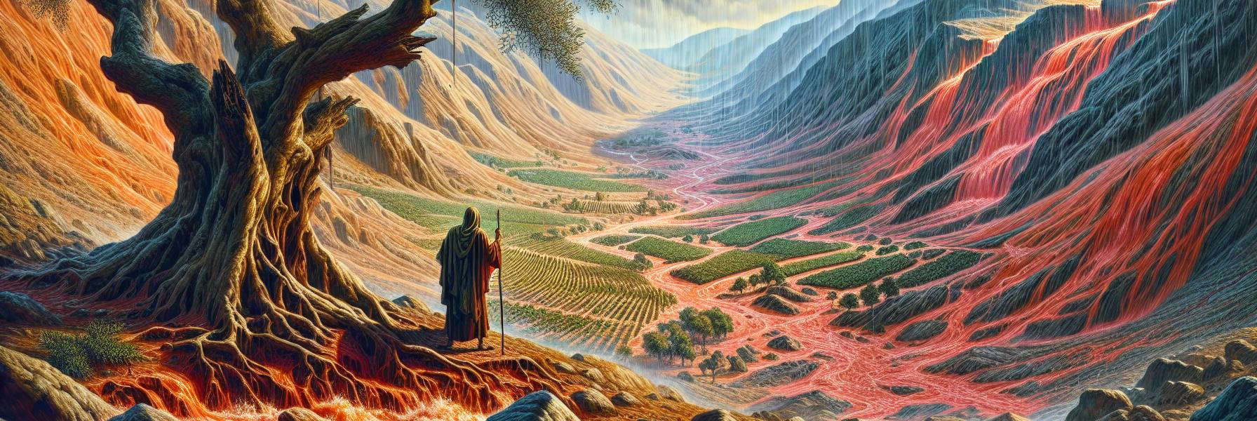 “你这以色列的山哪,要听耶和华的话。仇敌对你说:‘啊哈!这永久的山冈都归我们为业了!’……所以,你要指着以色列地说预言,对大山小冈、水沟山谷说,主耶和华如此说:我发愤恨如火说这话,是因你们曾受列国的羞辱……我暂且离弃你,却是大发怜悯将你收回。我的怒忌转离你,我要安静不再恼怒。”