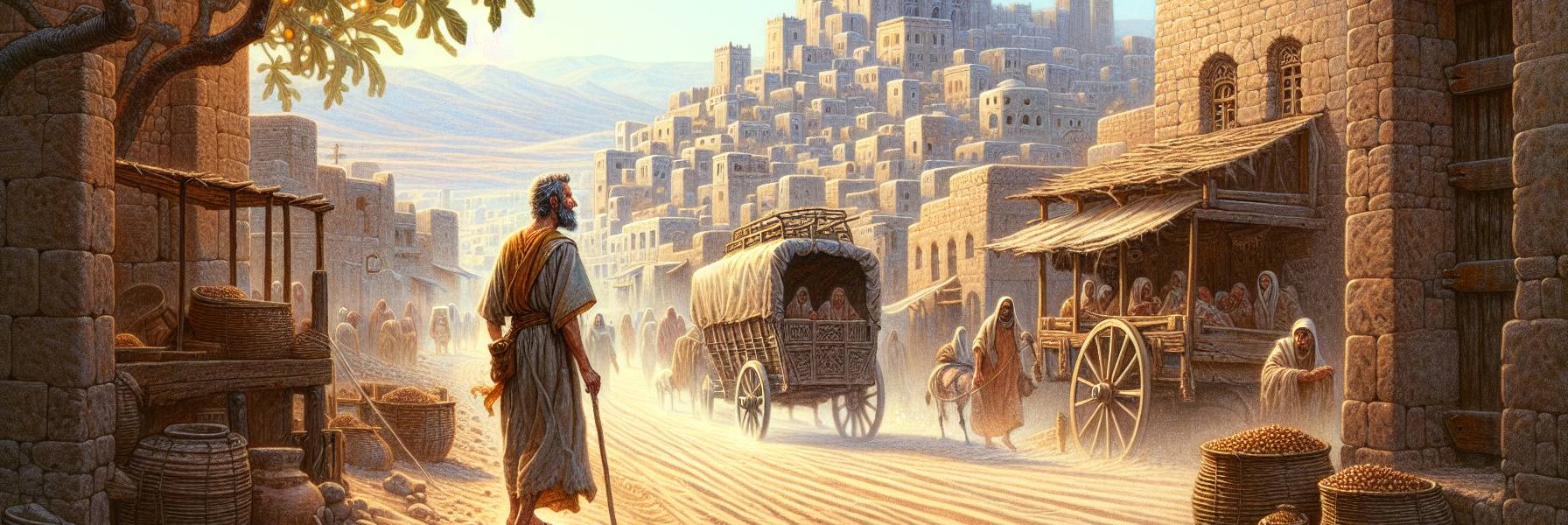 暮色從橄欖山的輪廓後漫過來,染黃了耶路撒冷石牆的縫隙。狹小閣樓裡,油燈的煙痕在天花板上積了厚厚一層。以拉都將手中的莎草紙卷又展開些,額頭幾乎要貼上去。他是個希利尼人,皮膚被家鄉的愛琴海曬成古銅色,但此刻在燈下卻顯得蒼白。對面坐著的猶太信徒拿俄米,正用指尖無意識地摩挲著袍子邊的穗子——那是她仍守著律法規條的微小記號。