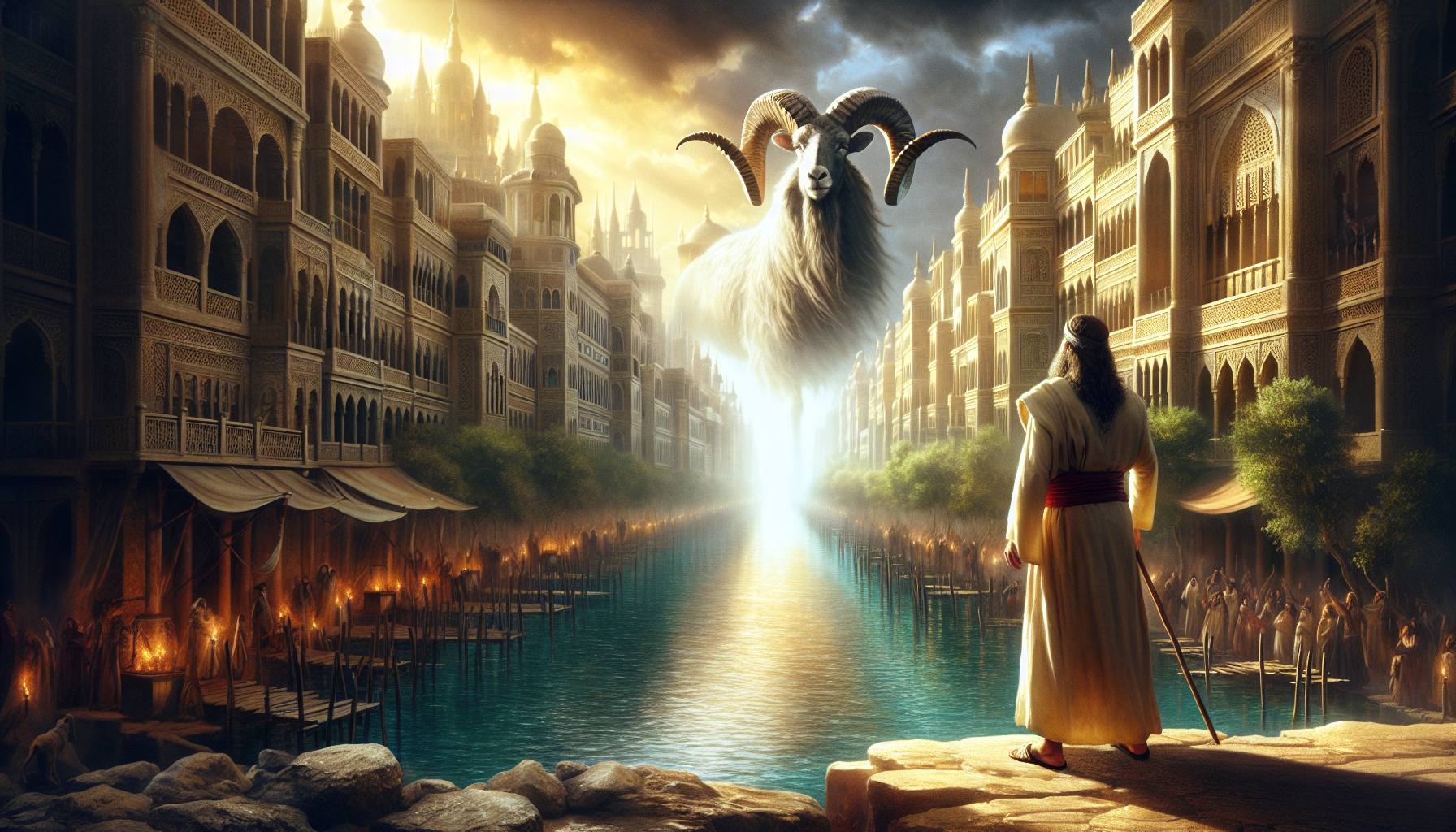 最醒目的是一個銀盤和一個銀碗。盤子很重,足有一百三十舍客勒,在晨光下不是刺眼的亮,而是一種沉甸甸的、吸納了光線的飽滿白色。碗稍輕些,七十舍客勒,邊緣打磨得溫潤。兩個器皿都盛滿了細麵,用油調和,作為素祭。旁邊是一隻小巧的金盂,不過十舍客勒,裡面盛著濃稠的、散發奇異甜香的膏油。接著是祭牲:一隻公牛犢,一隻公綿羊,一隻一歲的公羊羔,作燔祭;一隻公山羊作贖罪祭;又有兩隻公牛,五隻公綿羊,五隻公山羊,五隻一歲的公羊羔,作平安祭。