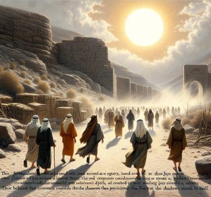 风卷过山谷,带来远处隐约的偶像祭坛的气味。他最后的话语如同判决:“看哪,神和我们同在,率领我们。以色列人哪,不要与耶和华你们列祖的神争战,因你们必不能亨通。”