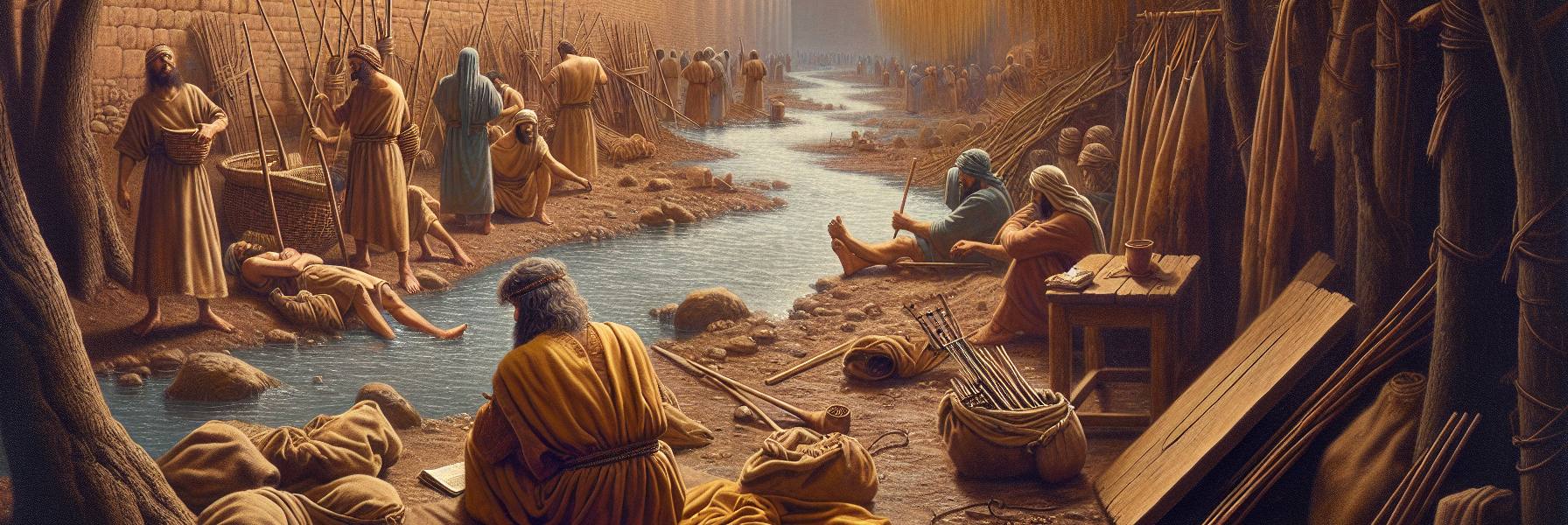 河水平缓地向南流去,流向幼发拉底河,流向更陌生的大海。亚设抱紧了他的琴。胡桃木的琴颈抵着锁骨,传来固执而温柔的压痛。他忽然极其清晰地看见一个画面:不是未来的归回,而是过去的最后一个黄昏——他们被驱赶着走出城门时,回头看见夕阳正把整个锡安烧成祭坛上的炭火。一个罗马兵(不,是巴比伦兵,记忆有时会混淆伤口)用枪杆捅了父亲的后背:“快走!”父亲踉跄时,怀里的瓦罐跌落,新酿的酒浆泼在尘土里,那气味浓烈而悲伤,像血,像所有无法挽回的事物。