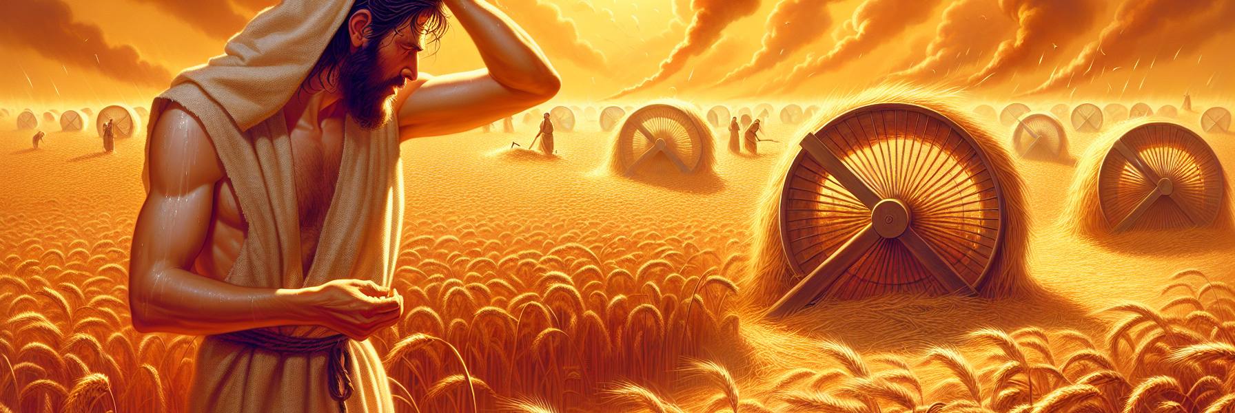 日头西斜,把基比亚山坡上的影子拉得老长。俄备得捶了捶酸痛的腰,直起身来,望着自家那片即将收割完毕的大麦田。风裹挟着干燥的尘土味儿和成熟的谷物香气,吹过他花白的胡须。田边那棵老无花果树下,坐着他的邻居玛基雅,正就着一皮袋水,啃一块干饼。两人之间,那点关于田界的旧日龃龉,早已像脚下的土地一样,被多年的日晒雨淋抹平了。