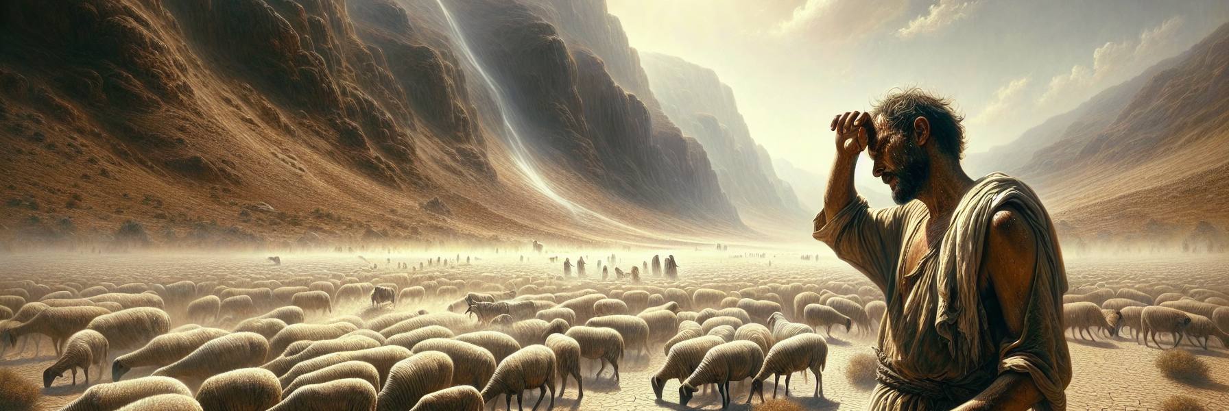 提哥亚的山地,在正午的日头下烫得如同烧热的铜盘。阿摩司用粗糙的手掌挡在额前,望向北方——那里是以色列地的方向,群山之后是撒玛利亚,是伯特利,是那些繁华得令人眩晕的城。风从旷野吹来,卷着沙粒,打在脸上微微的疼。羊群在稀疏的草丛间埋头啃食,对远处的一切漠不关心。