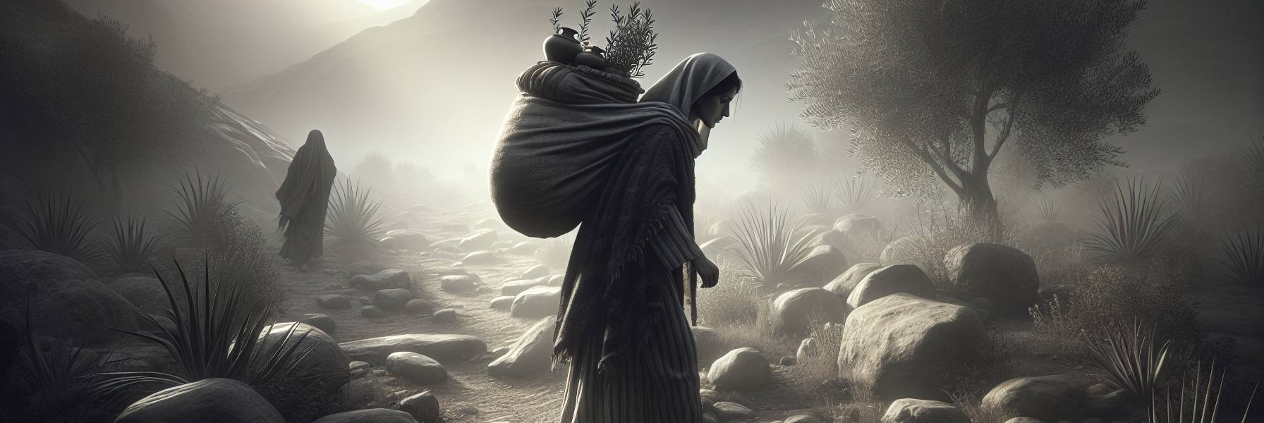 她们叫上雅各的母亲马利亚,三个女人踏着犹大地的尘土,往坟园的方向走去。晨风带着寒意,刮过山谷的乱石,发出呜咽似的声音。马利亚手里紧紧攥着那个没药罐子,陶罐的粗糙边缘硌着她的掌心。她想起星期五下午,他的手从十字架上垂下来的样子,指节因为长时间的痉挛微微弯曲,指甲缝里嵌着干涸的血和尘土。她们当时只能远远看着,直到亚利马太的约瑟得了彼拉多的许可,才匆匆把他取下,用细麻布裹好,安放在那座新凿的坟墓里。太阳已经西沉,安息日即将开始,一切都太仓促了。