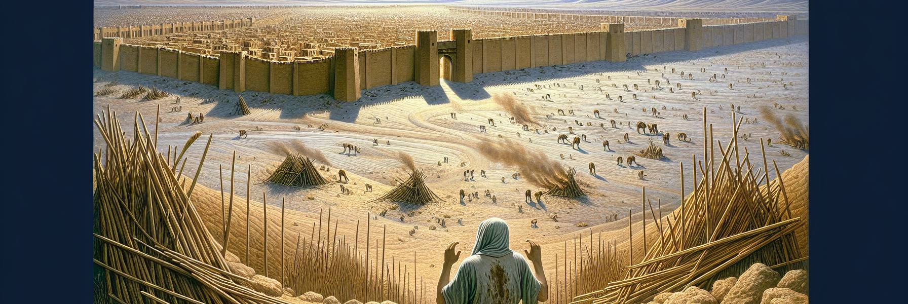 日头渐渐毒了起来。约拿坐在尼尼微城东边的山坡上,眺望着那片巨大的、他曾宣告要倾覆的城邑。尘土在热气中微微颤动,远处的城墙像一条疲倦的巨蛇,匍匐在平原上。风是干的,带着沙砾的味道。他在这里搭了一座简陋的棚子,几根木头,几把枯草,勉强能挡一挡正午的日头,却拦不住四面八方涌来的热浪。