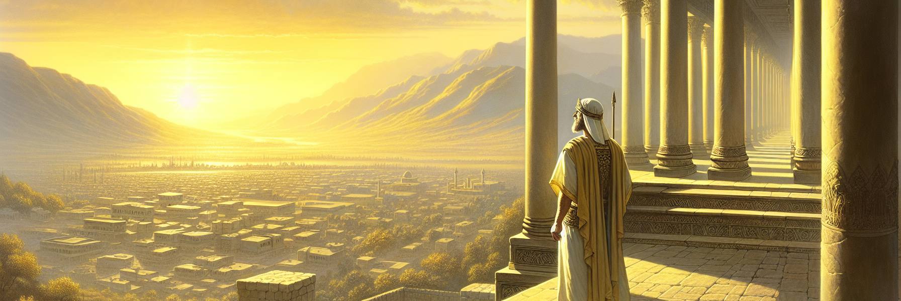 咸湿的海风从推罗的方向吹来,裹挟着松木与沥青的气味,拂过耶路撒冷的石阶。所罗门王站在宫殿的高处,目光却仿佛越过了橄榄山的起伏,投向北方的远方。父亲大卫那些未竟的念头,此刻在他心中不再仅仅是模糊的轮廓,而是成了胸腔里一团温热的、亟待成形的火焰——为耶和华的名建造殿宇。