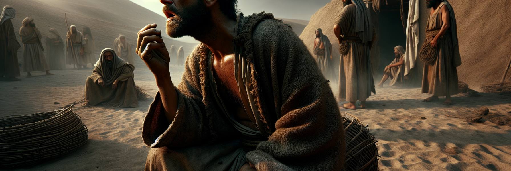 风从东边的荒漠刮来,卷着滚烫的沙粒,打在帐篷的毡子上,发出单调而固执的声响。炉子里的炭火将熄未熄,映着约伯浮肿、布满疮疤的脸,也映着琐法那张因激动而绷紧的面孔。空气里还残留着烤饼的焦香,但更多的是一种凝滞的、属于灰烬与苦痛的气息。