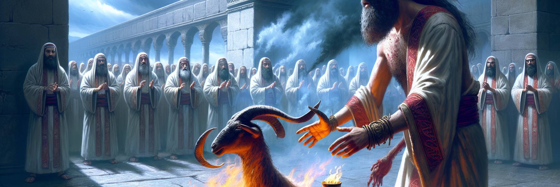 以赛亚靠在廊柱的阴影里,觉得那祭牲的血腥气浓得化不开,粘在喉咙里。他想起多年以前,还是孩子时,跟随父亲来献祭。那时的烟,似乎有着不同的质地,像恳求,像叹息,笔直地上达于天。而现在这烟,厚实,油腻,盘旋不去,仿佛一顶沉重的华盖,不是升向神,而是要压垮这殿的屋顶。