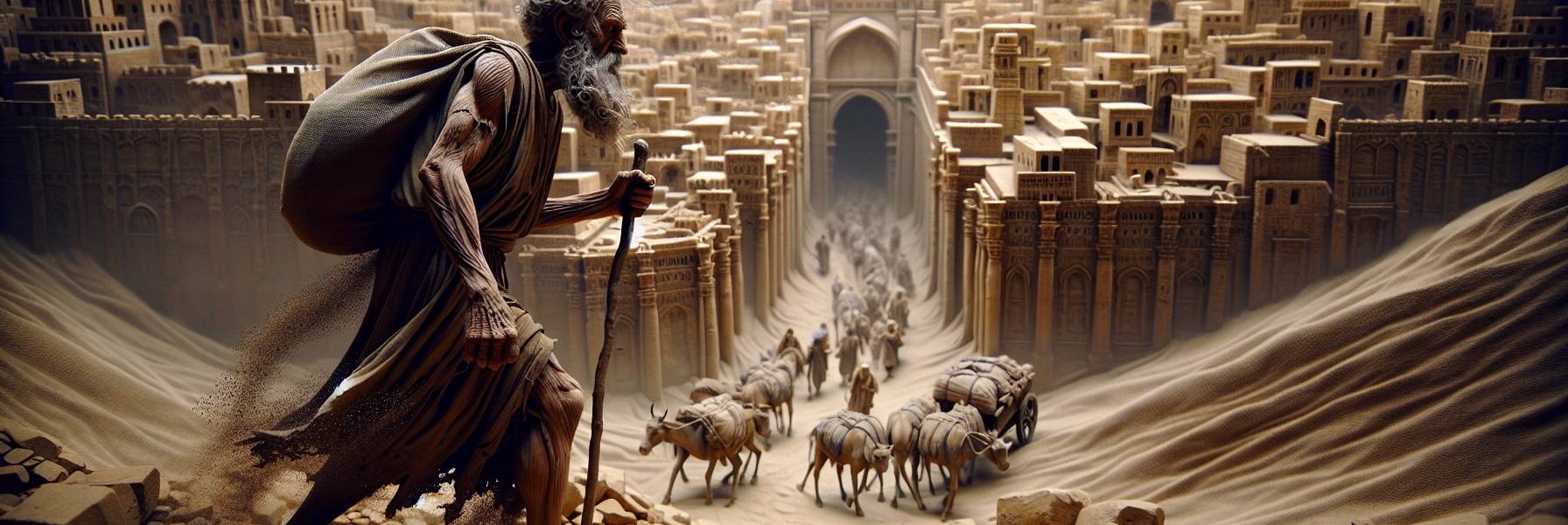 墨水的气味是陈旧的,混杂着尘土和羊皮经卷的淡淡腥气。以利押用枯瘦的手指抚过面前展开的羊皮卷,上面的希伯来文字因年久而有些模糊。窗外,巴比伦的日头正毒,晒得院里的无花果树叶子都打了卷。远处传来市集的喧闹,是阿卡德语粗粝的叫卖声,夹杂着异教神庙前香料燃烧的甜腻气味。在这里,耶路撒冷成了一个快要褪色的梦,一个在夜半无人时低声提起就会喉咙发紧的名字。