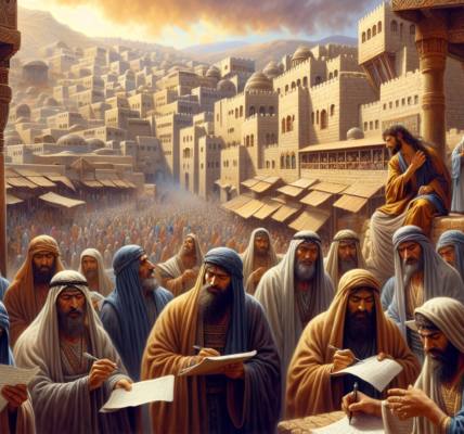 石头的热气从地面蒸腾上来,连先知袍的粗糙边缘也感到发烫。哈巴谷站在圣殿的外院墙下,阴影狭长而稀薄。他望着眼前所谓的敬拜人群——有人机械地念诵律法,有人眼角瞥着邻舍的钱袋,几个祭司正为献祭的鸽子是否完美无瑕而低声争执。空气里有香料、牲畜粪便和人心腐朽混合的气味。
