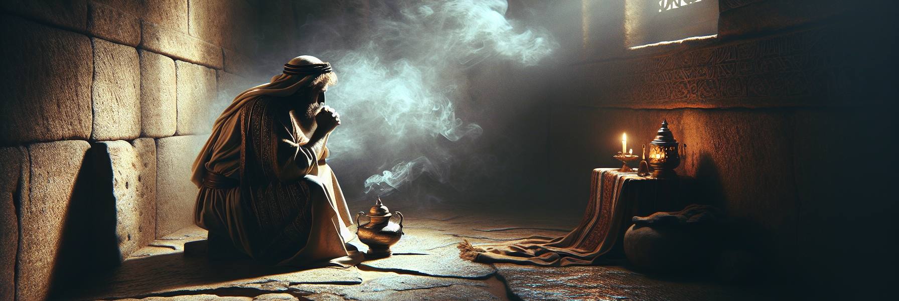 他想起伯特利城外的那个黄昏。扫罗的军队像蝗虫般铺满山谷,而大卫——那时他还不是王——整夜跪在溪边的巨石上。黎明时分,他抬起头对以萨迦说:“祂将心里的渴望赐给了我。”那时以萨迦不懂,现在他忽然明白了:王所求的从来不是疆土或荣耀。他在深夜帐篷里辗转反侧时所求的,不过是能按公义牧养这群百姓的智慧,不过是能在黑暗中辨认出耶和华面容的清醒。