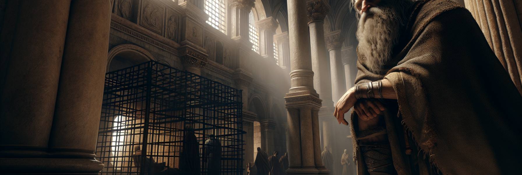 事情似乎就这样定了。但几天后,当另一位显赫的客人——亚基帕王与他的妹妹百尼基,带着全副仪仗进入该撒利亚城时,腓斯都心里又有了新的盘算。盛大的欢迎宴会上,银器反射着烛光,亚基帕王饶有兴致地谈起本地的宗教纷争。腓斯都忽然福至心灵,想到了那个关押着的囚犯。