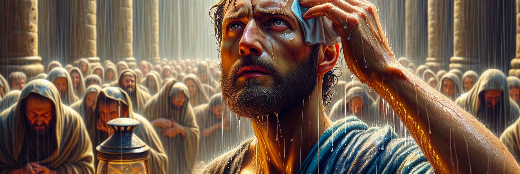 那年春天,教会的房顶漏雨。议事时,西庇太家的两个儿子声音最响,一个说当先用款项置办新座席,体面要紧;一个说需先周济村东的寡妇,仁爱为先。两人引经据典,言辞如锋,都带着火气。我坐在中间,看雨水从椽缝滴下,正好落在铜盆里,叮,咚,叮,咚。那时我心中忽然极静,想起一句话来:“我若能说万人的方言,并天使的话语,却没有爱,我就成了鸣的锣、响的钹一般。”屋外的争吵,屋内的滴水声,混在一起,竟真像一片杂乱的锣钹。