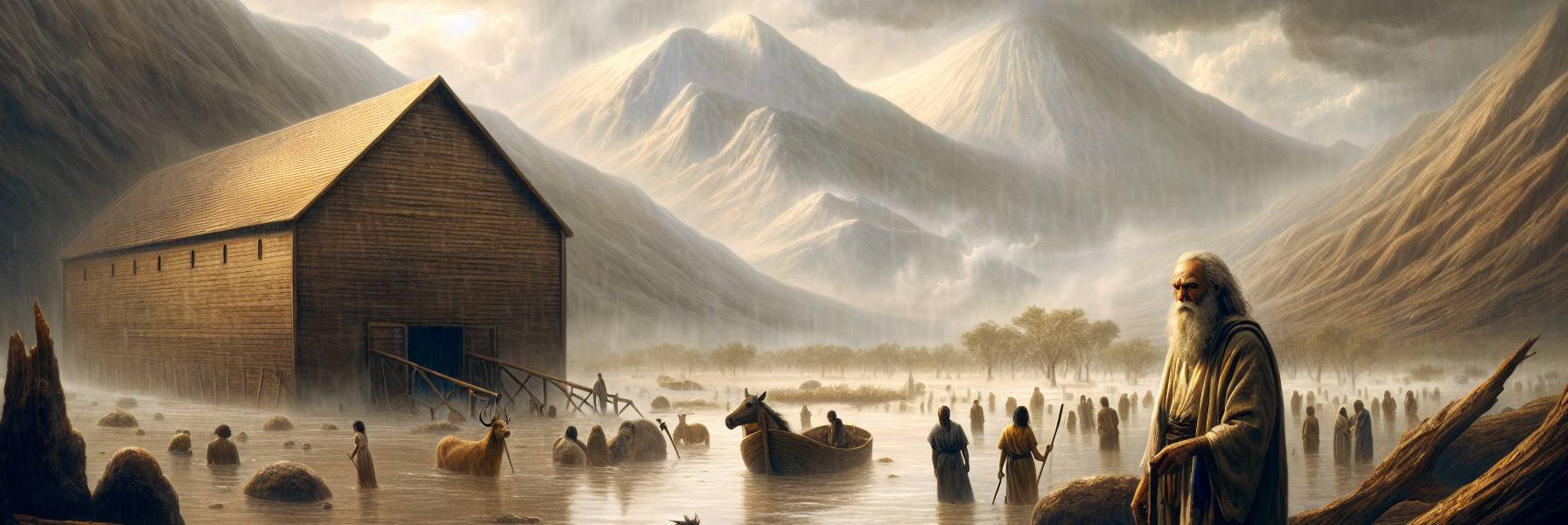 雨停了。不是渐渐停的,是突然之间,仿佛有一只巨大的手拧紧了天空的阀门。风裹挟着腐烂与新生混杂的气味,从方舟的木板缝隙里渗进来。挪亚把耳朵贴在木壁上,听了很久。只有一片厚重的、潮湿的寂静。他六百岁的人生里,从未听过这样的寂静。