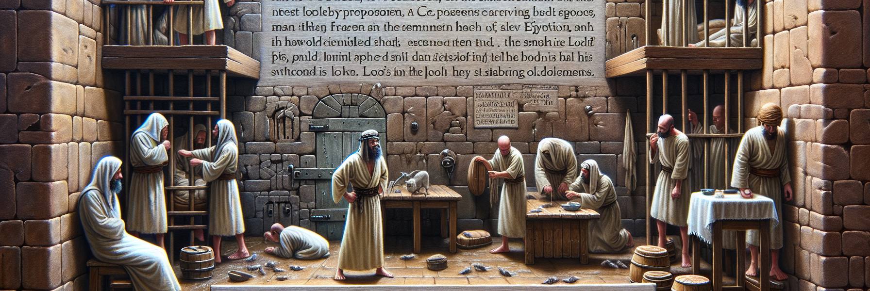 约瑟跪下来,额头触到冰凉的地砖。石头的寒气渗进皮肤,让他清醒。他开口时,声音因长久沉默而沙哑,却平稳:“这不在乎我,但神必将平安的话回答法老。”