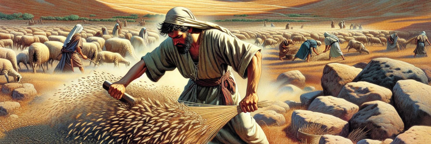 “律法是种子,”俄备得说,“种在心田里,长出来的不是荆棘,而是荫凉。”他慢慢讲下去,讲到一个安息年的春天,当别人都让田地歇息时,寡妇路得偷偷在自家小块田角撒了麦种——她怕饿死两个年幼的孩子。按律法当受责罚,但长老们聚议后,派人送去一袋面粉、一罐蜂蜜,还有一句话:“你的田,我们帮你守安息。”